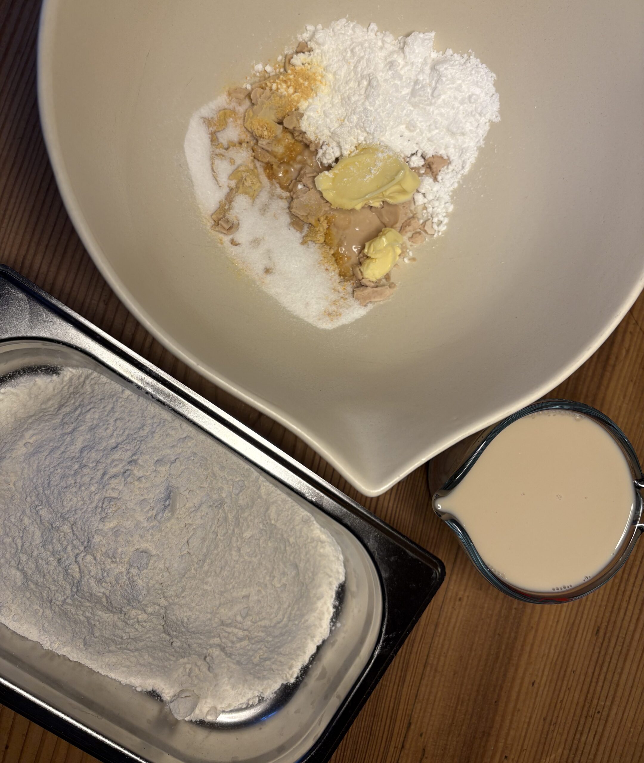 - 250 ml Sojamilch oder andere Pflanzenmilch, lauwarm
