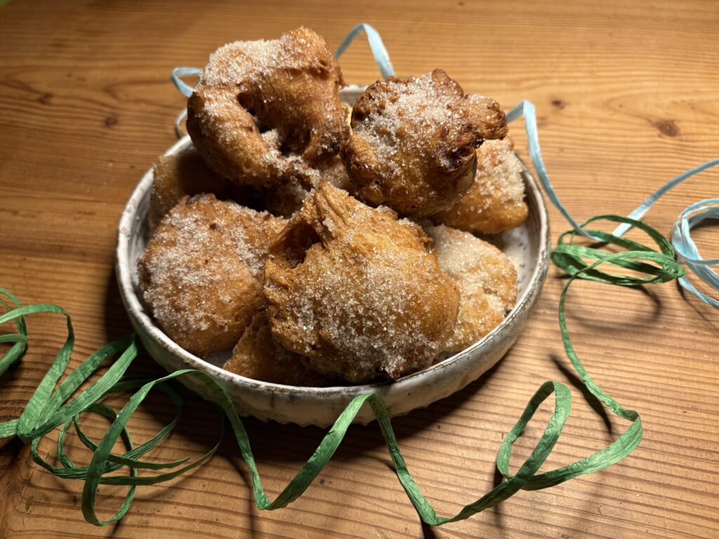Mäuschen, Mutzen oder Mutzen-Mäuschen, außen goldbraun, innen weich, noch warm in Zucker gewälzt: Genau so sollen sie sein. Vegan gibt es sie aber bisher viel zu selten. Das wird heute nachgeholt. Typisch ist die unkomplizierte Zubereitung der süßen Sattmacher: ein einfacher Teig in heißem Öl ausgebacken. Perfekt für die närrischen Tage, egal ob vor, während oder nach den Umzügen.